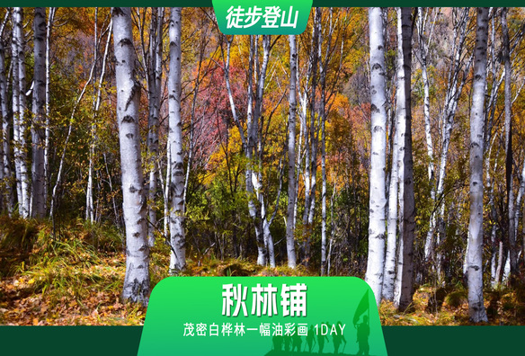 森林徒步系列の茂密白樺林一幅油彩畫-秋林鋪-百草畔-百花山